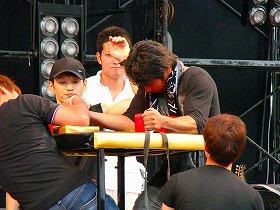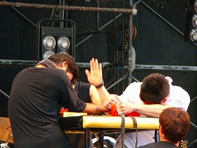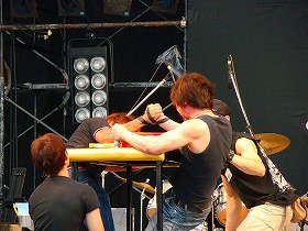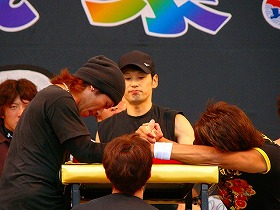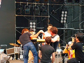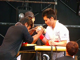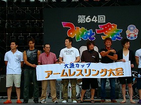 午後は(株)新日本海新聞社と共催のちびっこのど自慢やベンハーズジム主宰のアームレスリング大会。